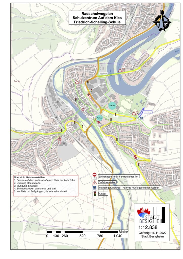 Die Stadt Besigheim hat in Zusammenarbeit mit den Schulen einen Geh- und Radschulwegeplan erstellt, der Eltern und Kindern die Möglichkeit erleichtern soll, mit dem Fahrrad oder zu Fuß zur Schule zu kommen.